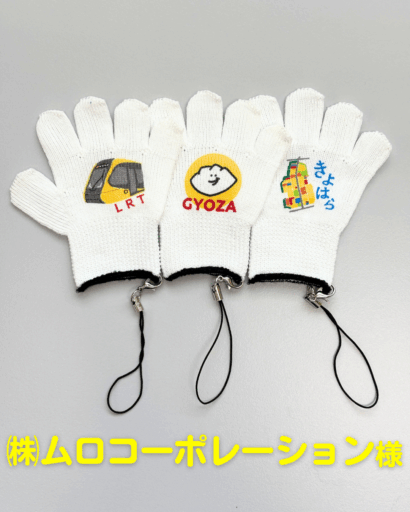 手袋型スマホクリーナーに、本社のある「清原団地」・次世代型路面電車システム「LRT」・栃木県の名産「ぎょうざ」をプリント。